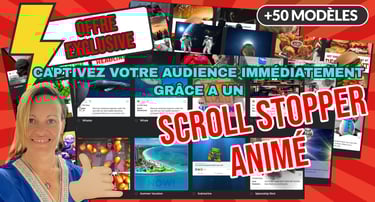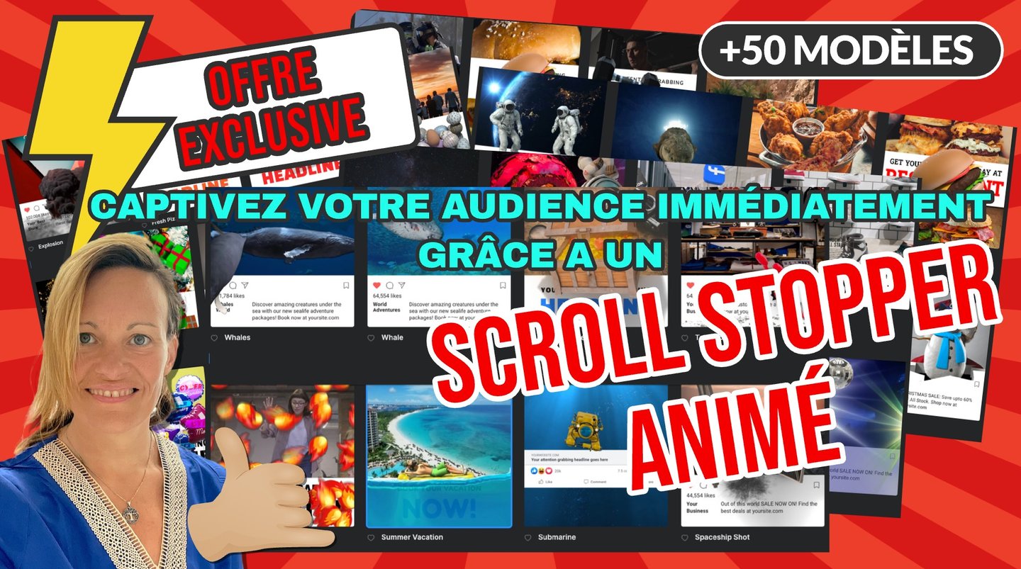 → soit offert en bonus, soit vendu en upsell (exemple : “Commandez vite ! Parce qu’à 20€ le scroll stopper animé, ça peut vous rapporter très gros !”).