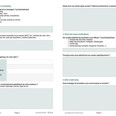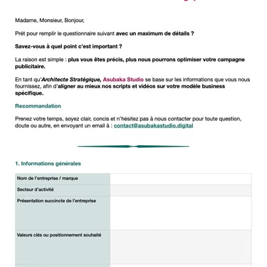Un brief créatif est un document essentiel dans le processus de création vidéo, servant de guide pour les créateurs. Il établit les attentes du client, les objectifs de la campagne, les caractéristiques du produit, et les détails nécessaires pour produire un contenu aligné avec la vision du client. C'est une feuille de route qui guide l'équipe créative dans le développement du projet tout en s'assurant que toutes les parties prenantes sont sur la même longueur d'onde.