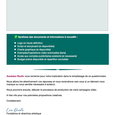 - Résumé des objectifs : Définition claire de ce que la vidéo doit accomplir.