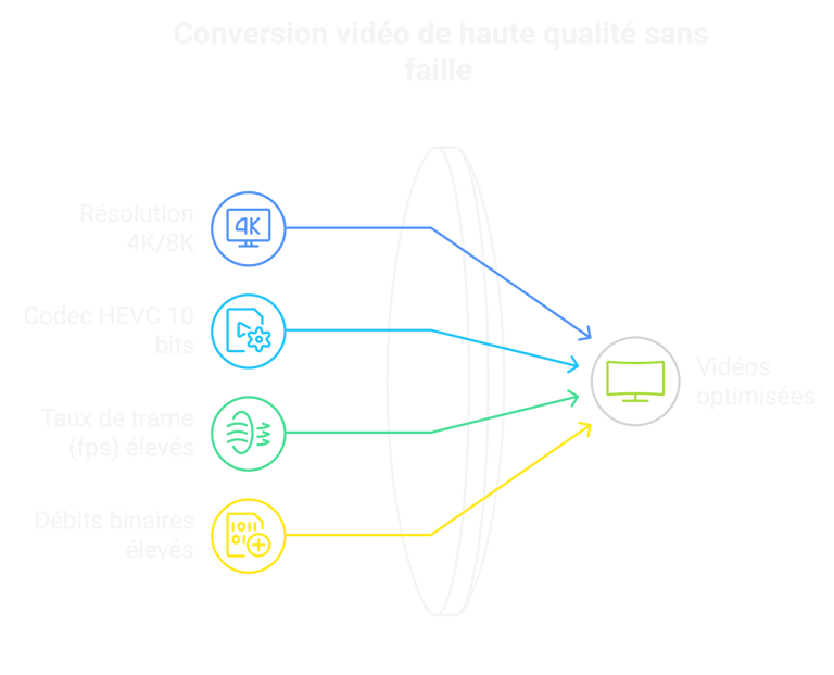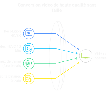 Nous convertissons vos vidéos volumineuses 4K/8K, vos vidéos HEVC 10 bits, vos vidéos à fréquence d'images ou à débit binaire élevé sans saccades ni défauts.