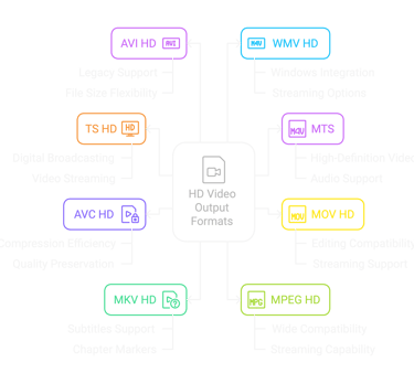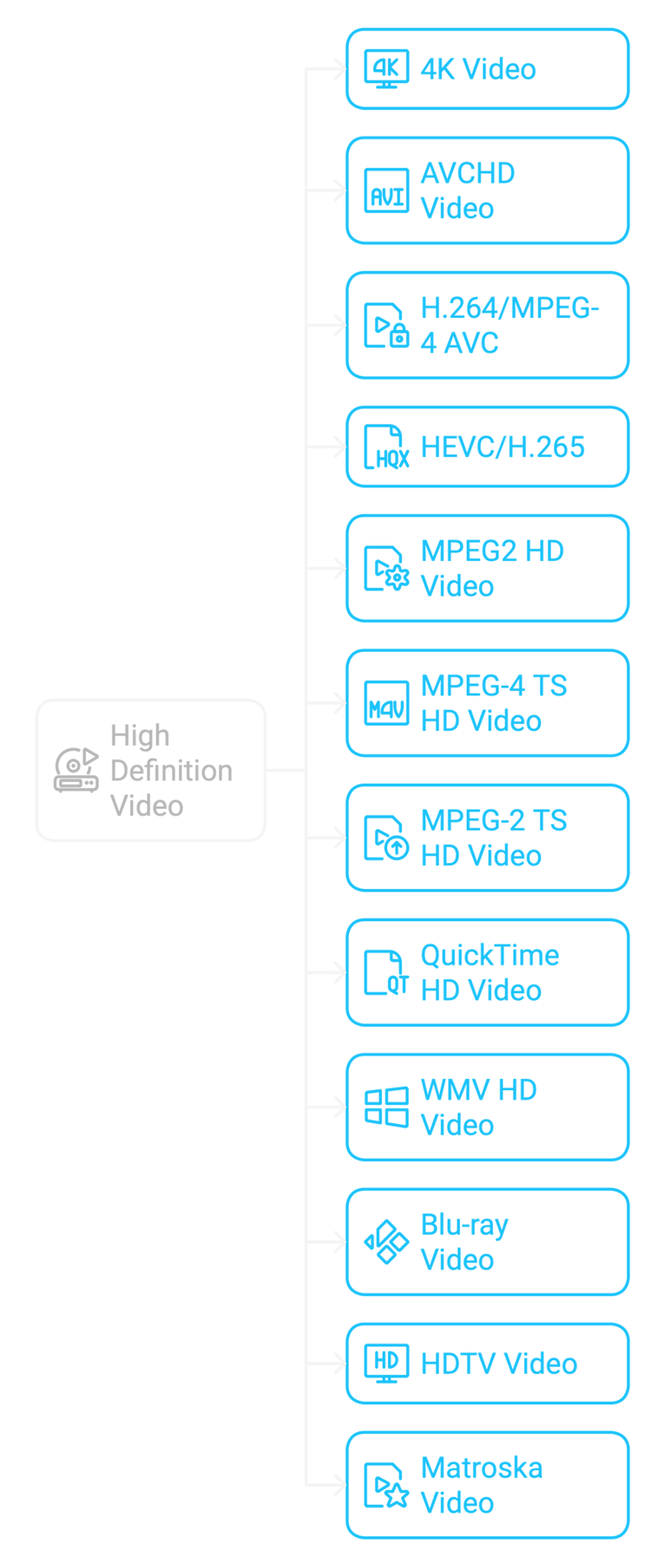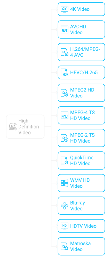 TS HD, MTS, MOV HD, AVC HD, MKV HD, MPEG HD, AVI HD, WMV HD