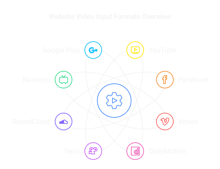 1000+ plateformes : YouTube, Yahoo, Google Plus, Facebook, DailyMotion, Vevo, Break, CBS, UStream, MTV, Vimeo, Niconico, SoundCloud, Audiomack, etc.