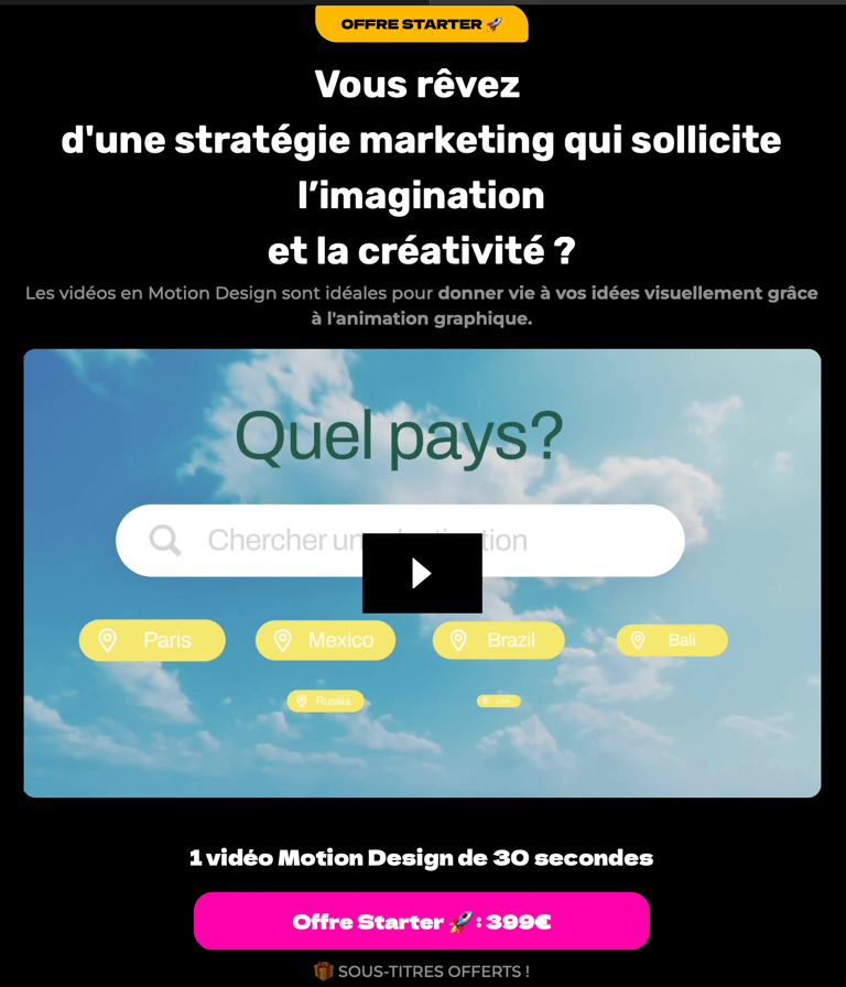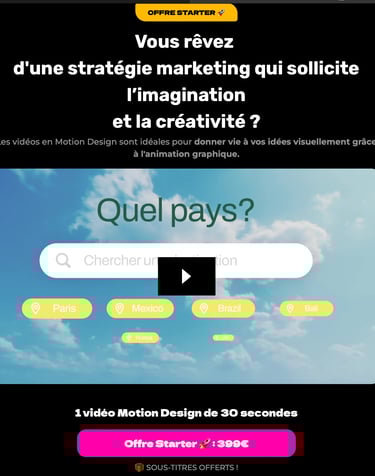 "Nos vidéos-funnels optimisées ne se contentent pas d’attirer l’attention : elles transforment chaque vue en une opportunité de vente. Idéal pour booster votre entreprise."