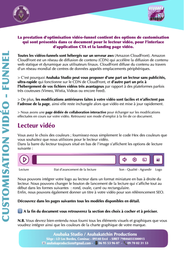 ➤ Retrouvez tous les modèles et options de personnalisation des Lecteurs Vidéo, des Interfaces CTA et des Pages de Destination dans 2 documents en PDF nommés :