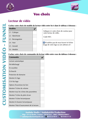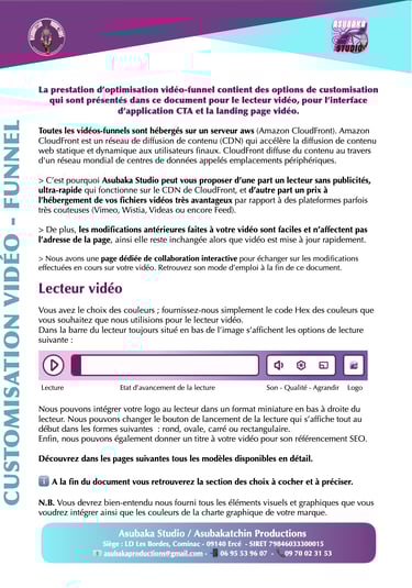 Ensuite, vous devez nous retourner le document 1. "Customisation Vidéo-Funnel - Vos choix" dûment rempli à cette adresse : contact@asubakastudio.digital.