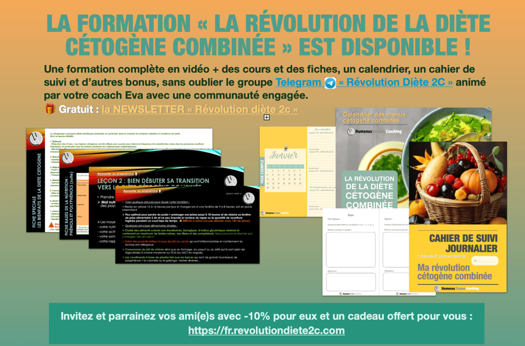 Achetez la formation maintenant pour débuter votre voyage vers une vie plus saine et épanouie grâce à la Diète Cétogène Combinée.