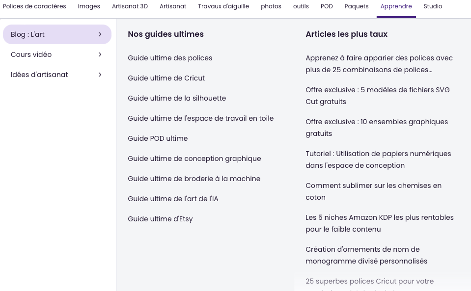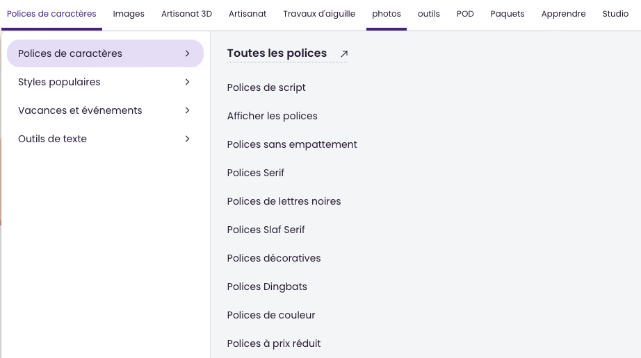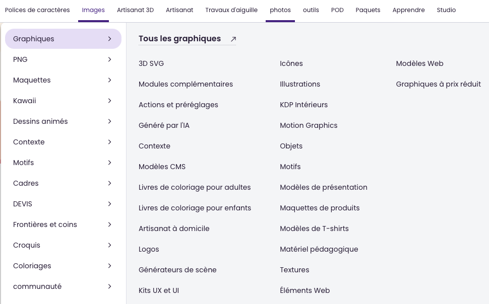 Polices et graphiques : Vous pouvez y trouver des polices uniques ainsi que des graphiques pour vos créations.