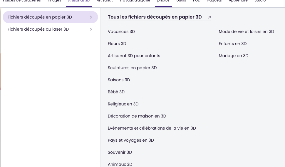 Modèles et fichiers de découpe : Vous trouverez une large gamme de fichiers compatibles avec des machines de découpe, notamment des fichiers SVG, PNG, DXF, etc.