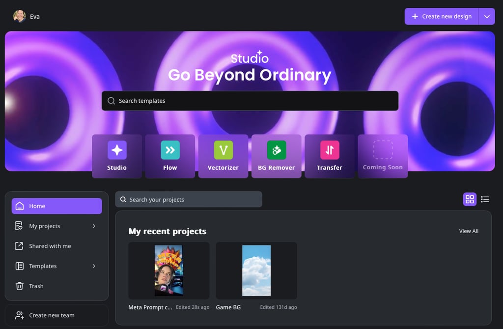 Les outils intégrés sont extrêmement utiles : comme Flow, Vectorizer, BG Remover et Transfer + d’autres à venir...