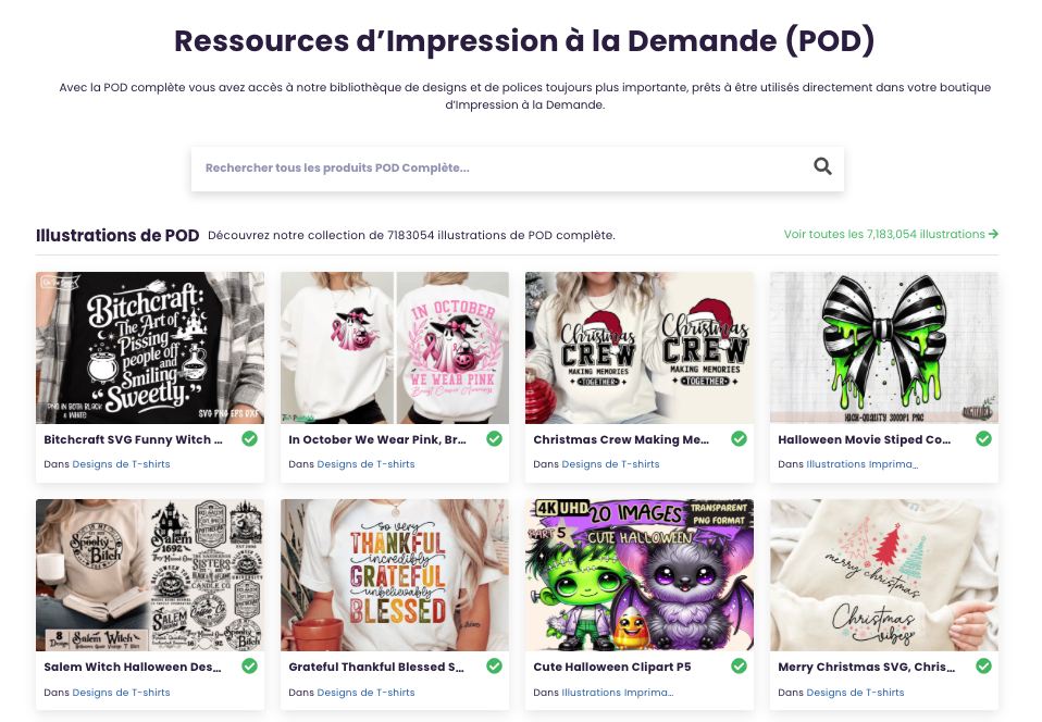 Avec Full POD, vous avez accès à notre bibliothèque sans cesse croissante de designs et de polices, prêts à être utilisés directement dans votre boutique Print On Demand.