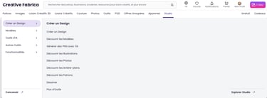 Intégration des ressources : Il est possible d'importer des éléments graphiques ou des polices depuis la bibliothèque Creative Fabrica pour les utiliser dans vos créations.