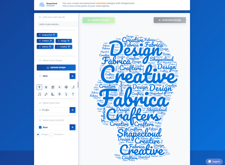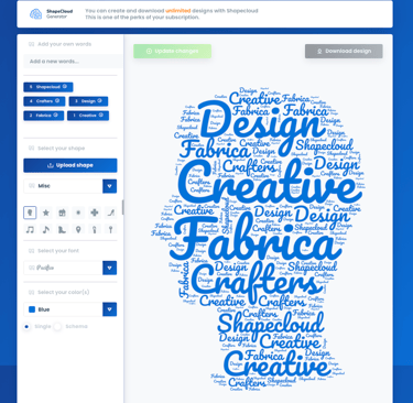 Choix des polices et des couleurs : Shapecloud vous permet de personnaliser les polices utilisées ainsi que les couleurs des mots, offrant des possibilités de designs créatifs pour les blogs, les impressions, ou tout autre projet.