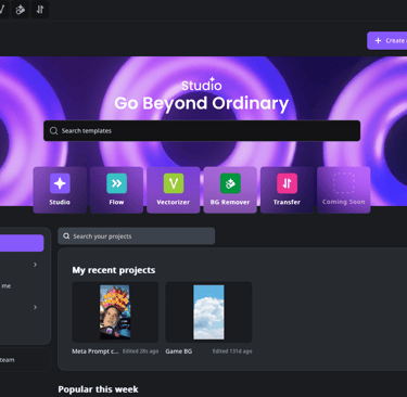 Creative Fabrica Studio est une plateforme IA à part entière, c'est un éditeur web très puissants qui intègre plusieurs outils en un et qui est orientée vers un environnement créatif collaboratif.