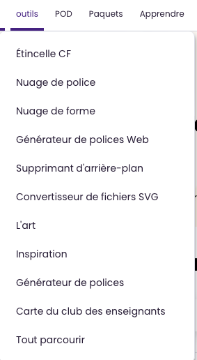 La section Tools de Creative Fabrica propose divers outils conçus pour aider les créateurs à simplifier et enrichir leur travail. Voici un aperçu des outils disponibles dans cette section, incluant CF Spark, Fontcloud, Shapecloud, Webfont Generator, et d’autres :