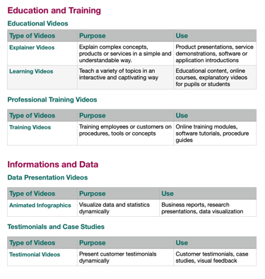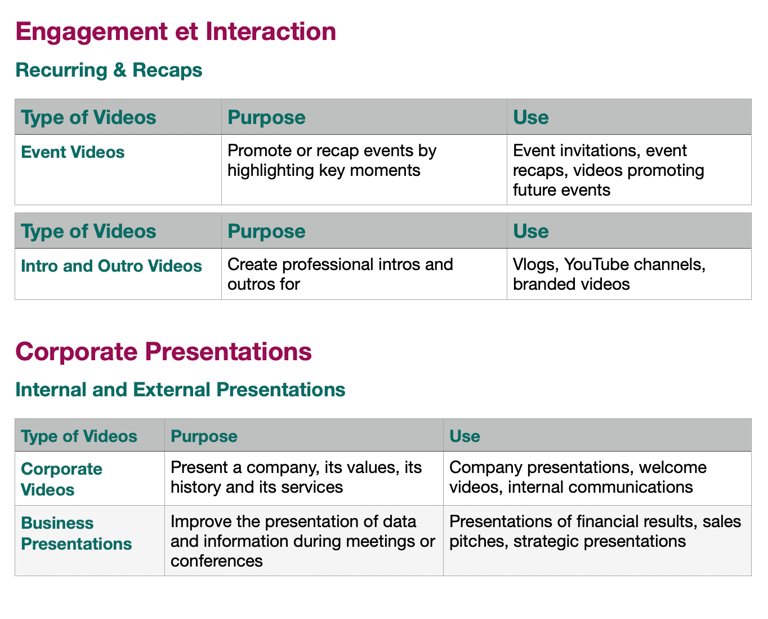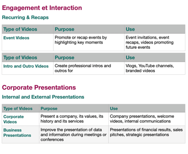 Internal or online Educational Videos : Explainer, Learning, Training, Tutos ;