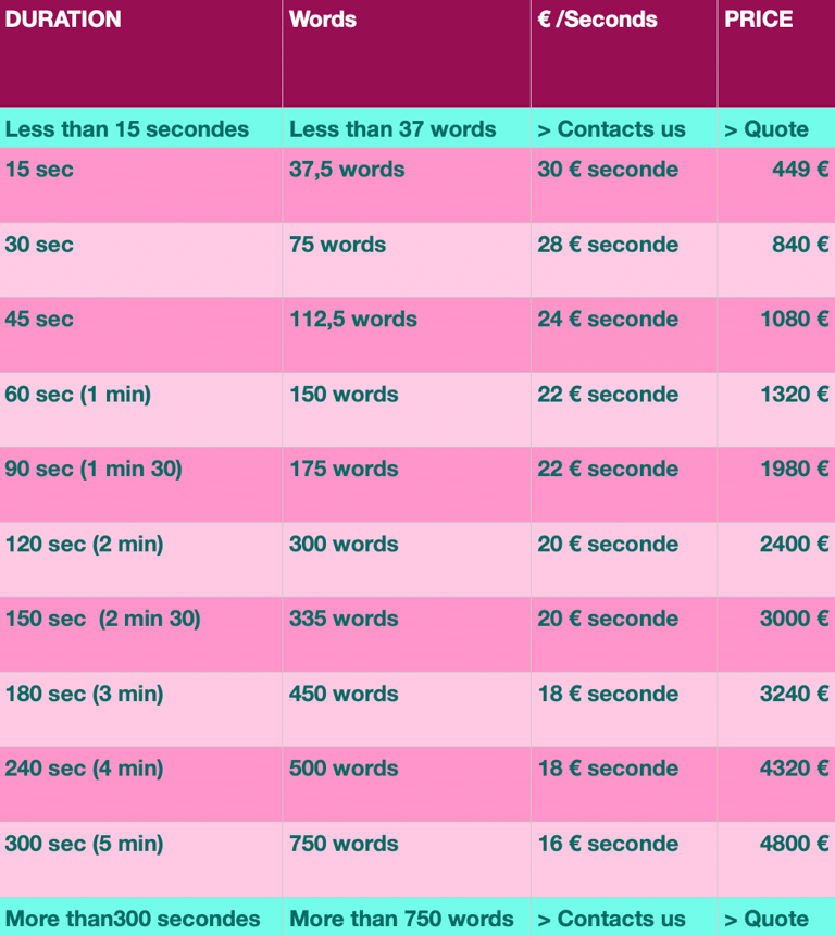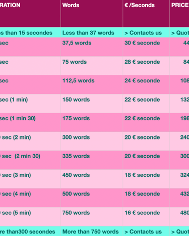 For all our options, please go to the "Service Prices" page or download the file directly in PDF: download.