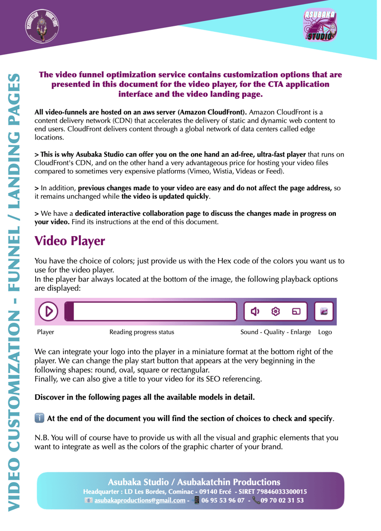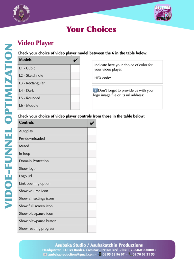 Then, you must return the document 1. "Customization Video-Funnel - Your choices" duly completed to this address: contact@asubakastudio.digital.