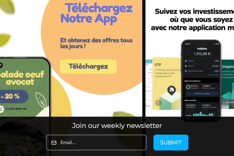 Registration Form ▻ Direct subscription to a newsletter via a simple form and a button,