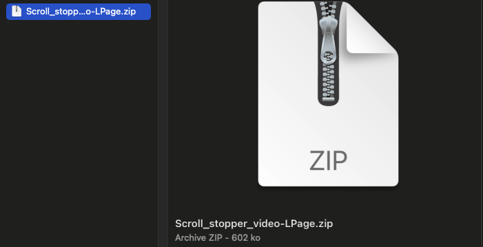 👀 Exemple d'un en images du fichier .zip, et une fois dézippé, ce qu'il contient :