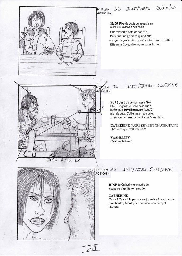 Ce storyboard plus long a été patiemment dessiné par Eva (notre directrice artistique) pour un projet de film d'environ 60 minutes, mais n'a pas obtenu les aides du C.N.C.